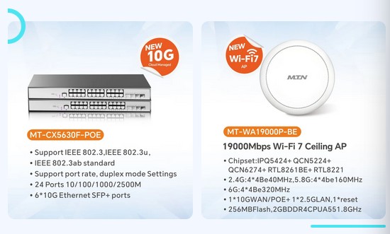 MTN will bring its latest technological achievements and applications including GPON/XGSPON, 5G CPE, 5G MBB&FWA, switches, Wifi7 wireless routers, AI-IPC, and cloud network products to the event. We look forward to meeting you at the exhibition to explore industry trends, discuss cooperation and development, and jointly unlock the infinite possibilities of the digital world driven by network communication wisdom and innovation.