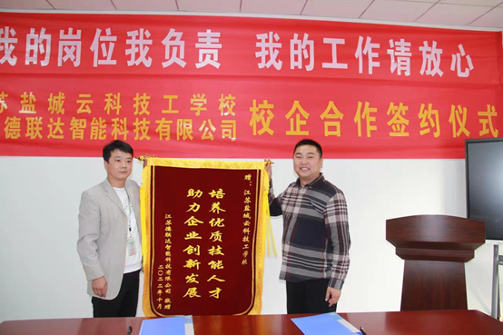 In order to implement the talent training model of engineering integration, the two sides agreed that starting from the fall semester of 2022, the enterprise will set up the "title class of Jiangsu Date-link Intelligent Technology Co. The school and the enterprise will jointly develop the talent training program and jointly prepare the curriculum plan, and the enterprise will select outstanding technicians to participate in the school's curriculum teaching and give priority to the qualified graduates of the title class. The school assigns qualified teachers to lead the interns, participate in the production practice and management of the enterprises, and take the enterprises as the first choice of employment for the graduates, so as to guarantee the development of the enterprises in terms of talents.